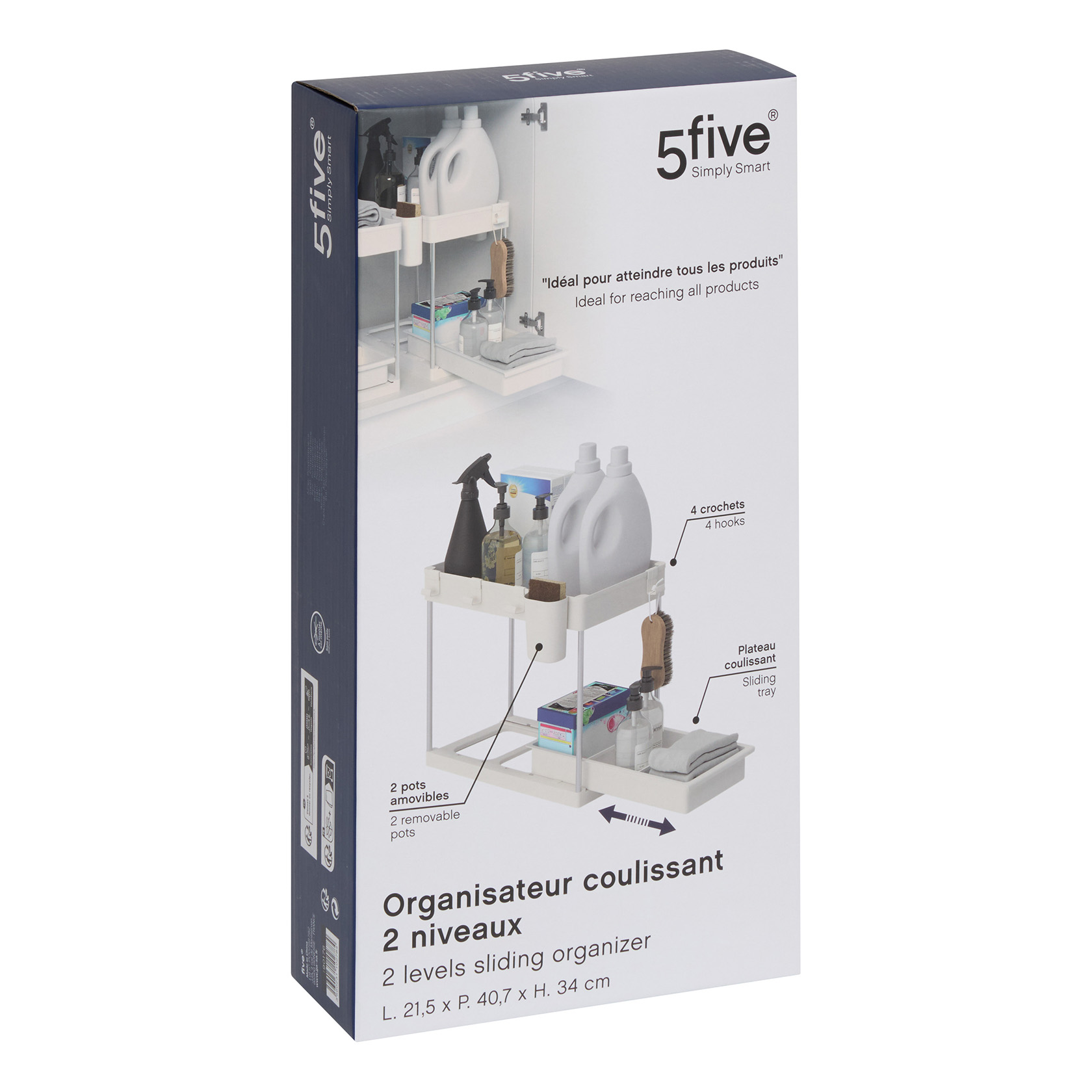 Dit tweelaagse rek is speciaal ontworpen voor de kast onder de gootsteen in de keuken. Daardoor berg je sponzen en schoonmaakspullen overzichtelijk op.
