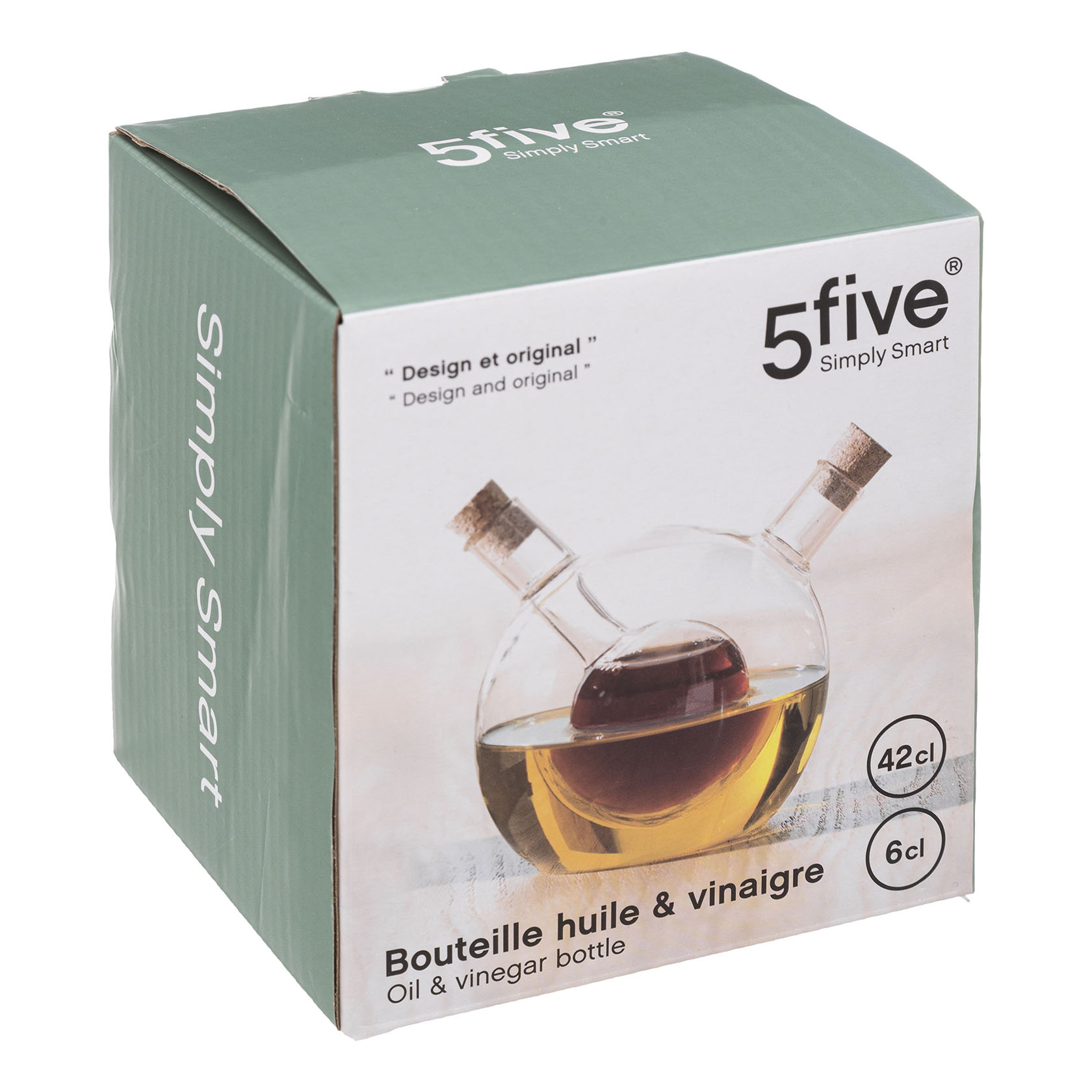 Deze originele 2in1 oliefles voor olie en azijn in de vorm van twee ronde glazen flessen die in elkaar zijn verbonden. Zodat de flessen één geheel vormen, kun je deze 2in1 glazen olie en azijn stel eenvoudig ruimtebesparend opbergen