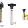 Een handig keukengereedschap dat speciaal is ontworpen voor het snijden en schillen van verse ananassen. Het belangrijkste onderdeel is de scherpe cilindrische boorkop met scherpe tanden aan de onderkant. Deze boorkop wordt gebruikt om door de schil en het vruchtvlees van de ananas te boren.
