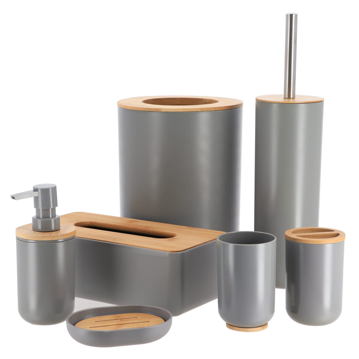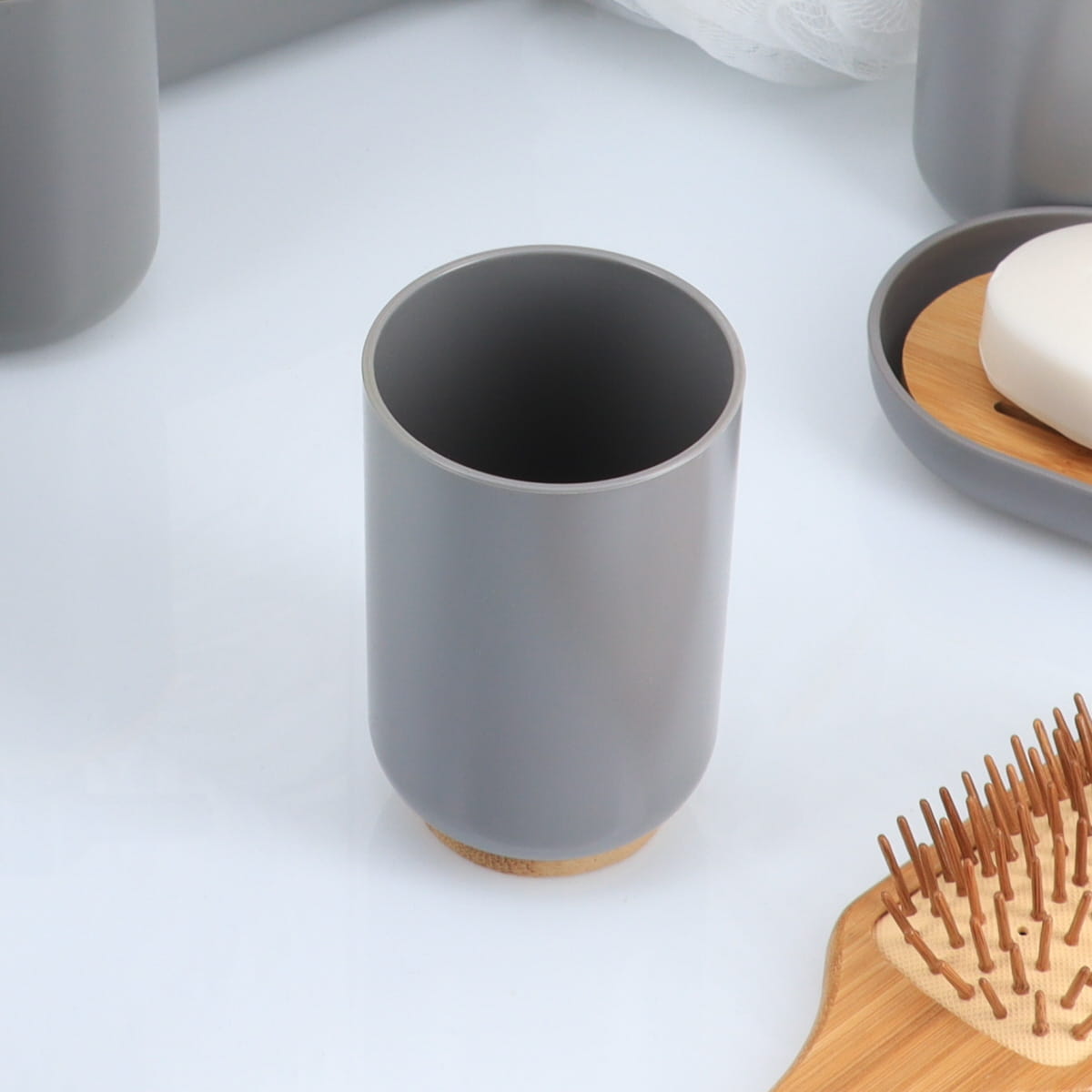 Ronde badkamer tumbler kunststof bamboe grijs-naturel 320ml