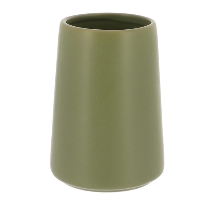 Deze kakigroene badkamerbeker met een strakke conische vorm en een inhoud van 420 ml is vervaardigd van stoneware, die duurzaamheid en een moderne uitstraling garandeert. Het minimalistische ontwerp en de kakigroene kleur voegen een eigentijds element toe aan de badkamer of keuken.