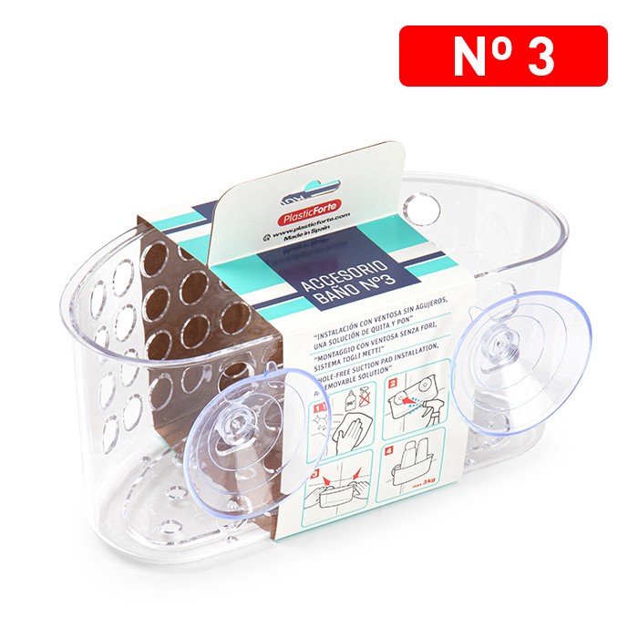 Badkamerrekje/ douchebakje kunststof 20×11,5×8,6cm (No.3) met 2 zuignappen