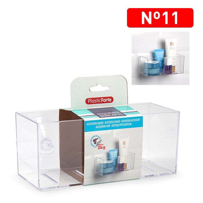 Kunststof badkamerbakje 17x7x7cm (No.11) met 2 zuignappen