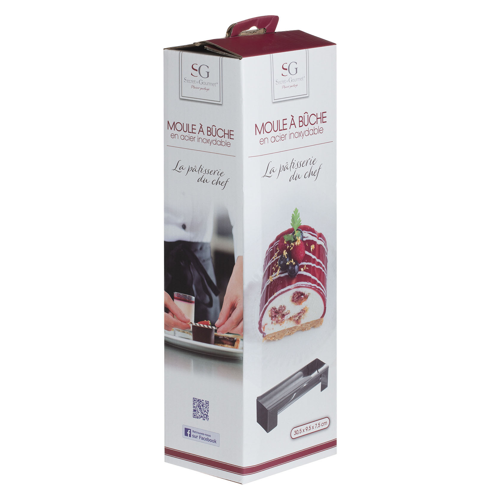Verstelbare bakvorm ideaal om kerststam of andere verfijnen patisserie te maken. De bakvorm is in 3 driedelen te demonteren om te voorkomen dat de taart uit elkaar valt.