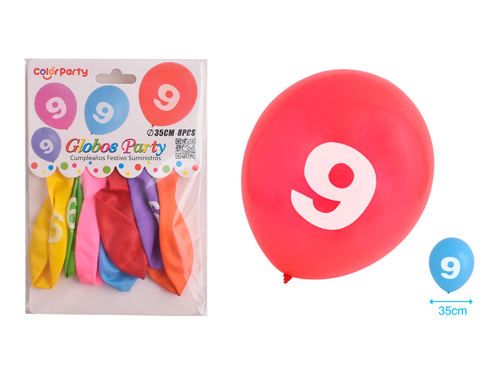 Latex ballonnen cijfer 9 diameter 35cm 8 stuks