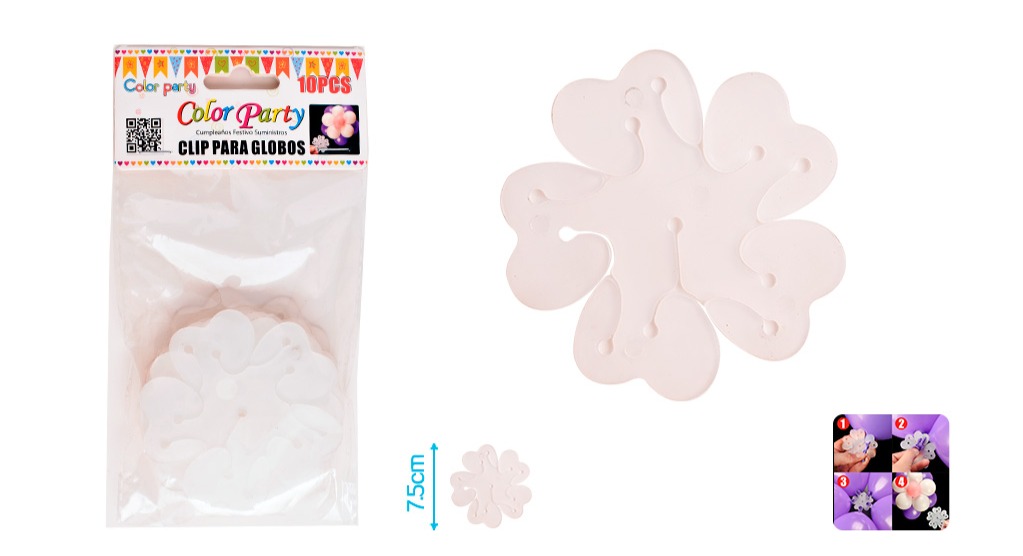 Een speciaal hulpmiddel om eenvoudig trossen van ballonnen te maken. Blaas de ballon op, knoop erin en trek de knoop door het gat en schuif het naar buiten. Doe dit met meerdere ballonnen en u heeft heel eenvoudig een prachtige tros ballonnen gemaakt. Ideaal om 11 ballonnen aan elkaar vast te maken.