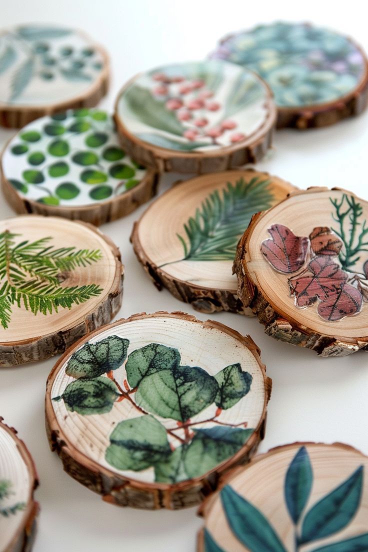 – Kerst. Als kerstdecoratie. Schilder of brand kerstmotieven zoals een kerstboom, rendieren of sneeuwvlokken op de schijf en hang het in de kerstboom of aan de muur.
