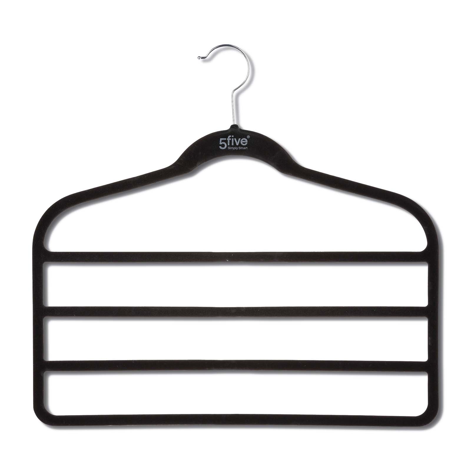 Heb jij te weinig ruimte in de kast? Dan is deze broekhanger de oplossing. Je kan tot wel 4 broeken op deze hanger hangen. Hierdoor bespaar je ontzettend veel ruimte in je kledingkast. Je schuift de broeken op de stangen van de hanger. Dankzij de zachte maar toch ruwe fluweel coating blijft de stof goed hangen en verschuift die niet, zonder krassen of slijtage te veroorzaken.