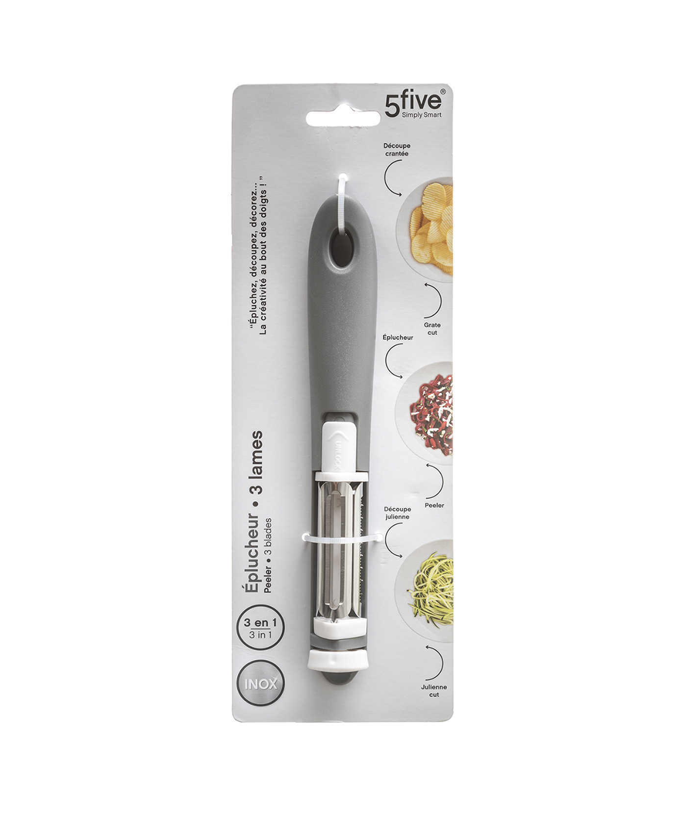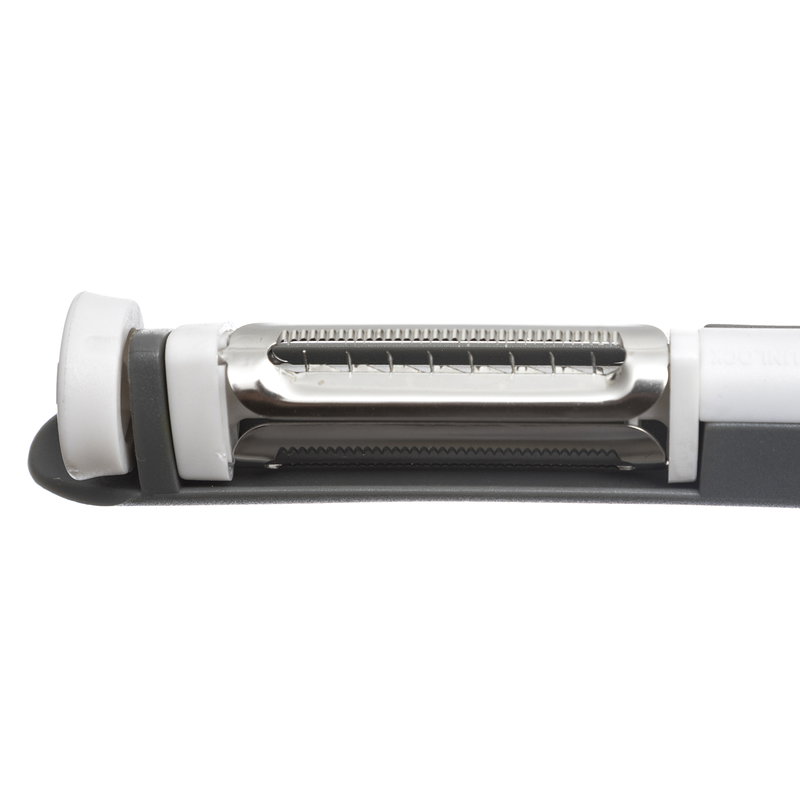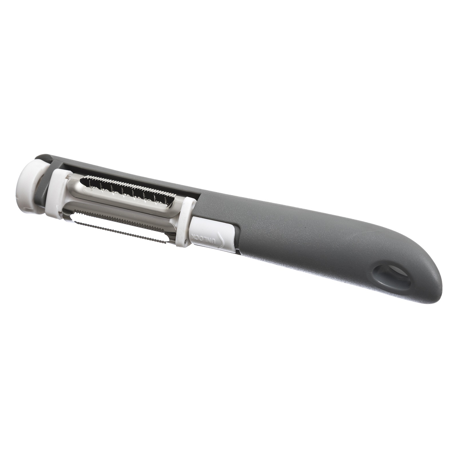 – Efficiënt, 1 dunschiller is voldoende. U hoeft de mesjes niet te verwisselen aangezien u ze met het 360 graden ontwerp kunt doordraaien voor een andere stand!