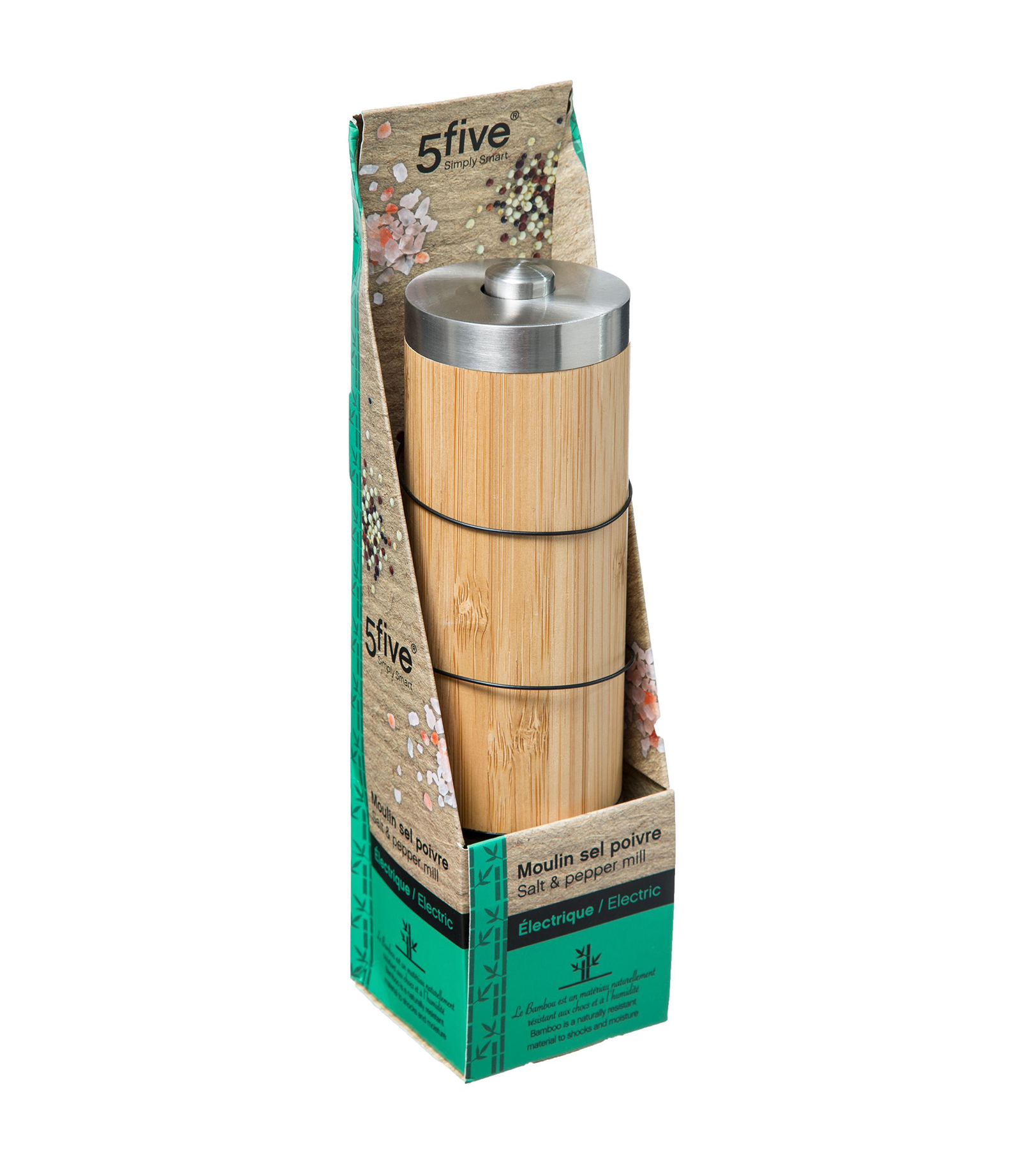 Elektrische peper-/ zout-/ kruidenmolen bamboo-RVS