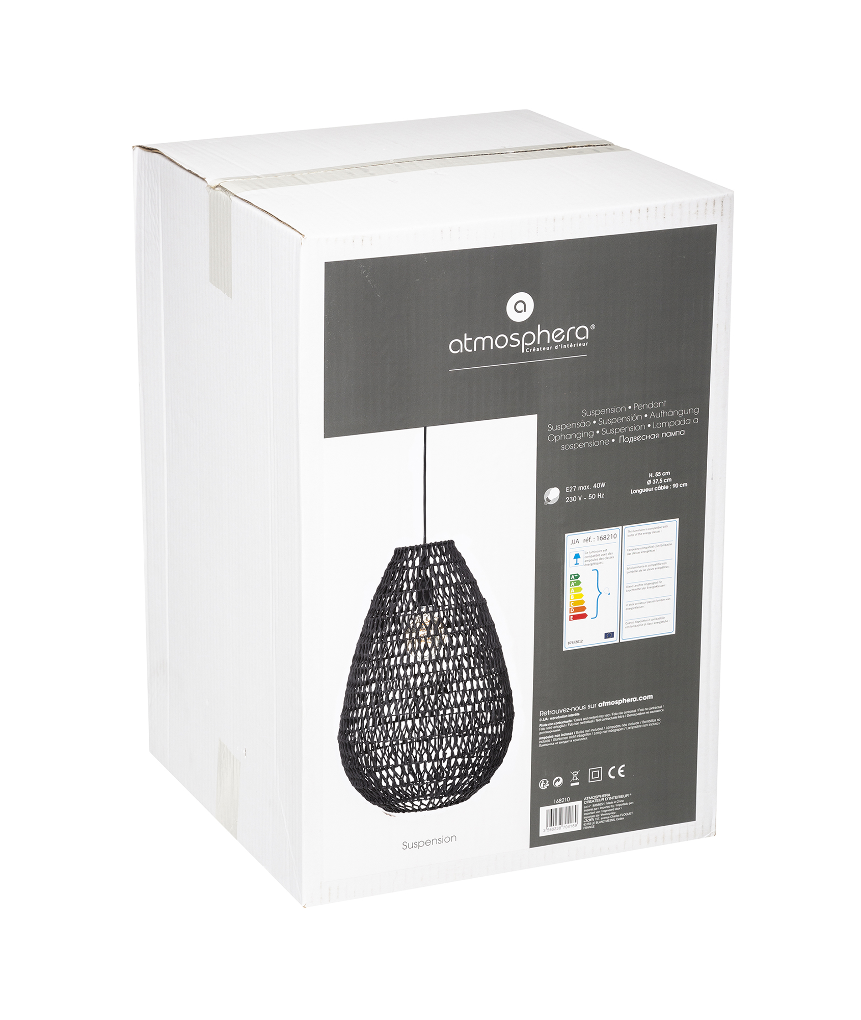 Gevlochten hanglamp “Etel” zwart D37,5cm