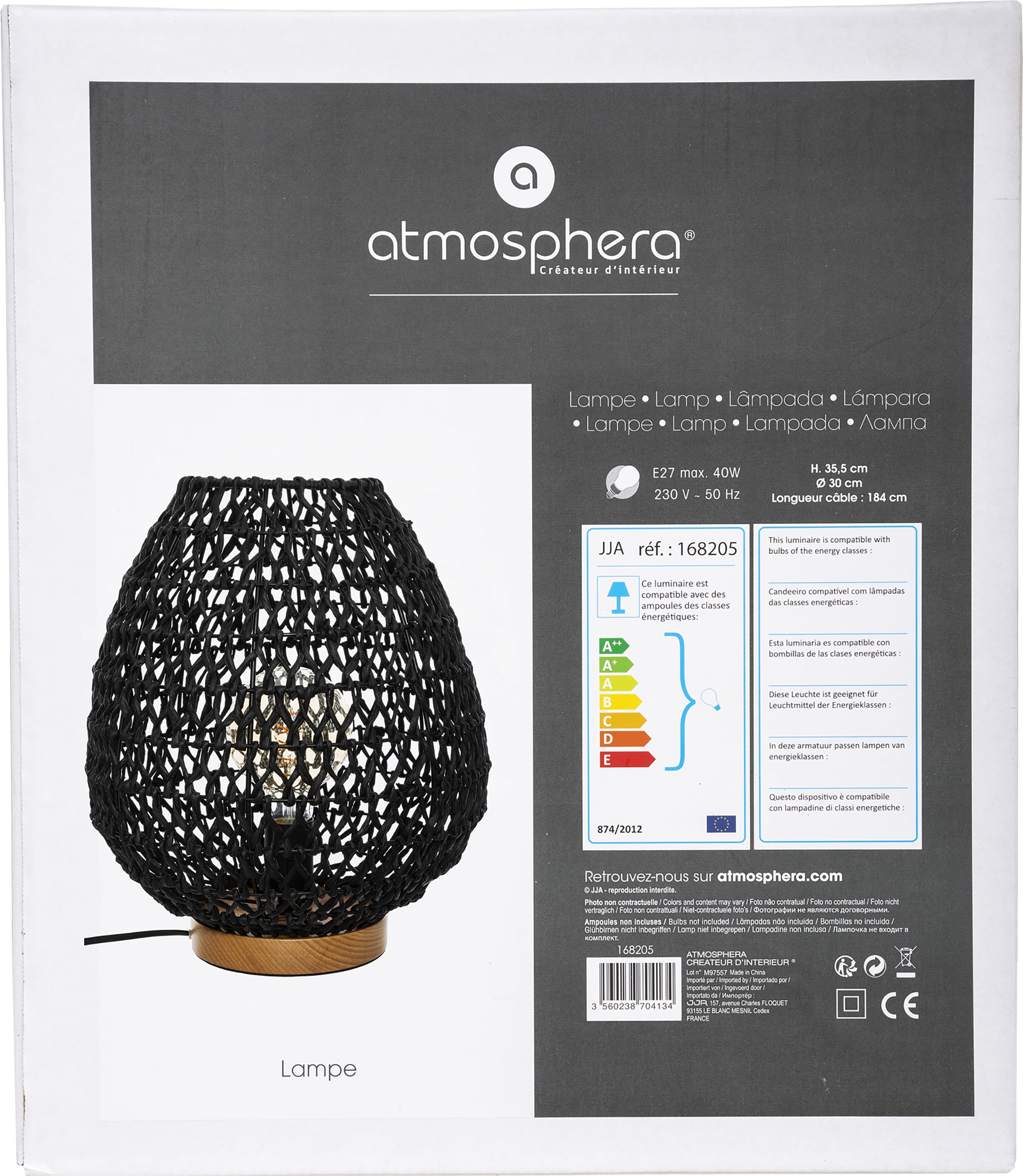 Gevlochten tafellamp “Etel” zwart D30*35,5cm