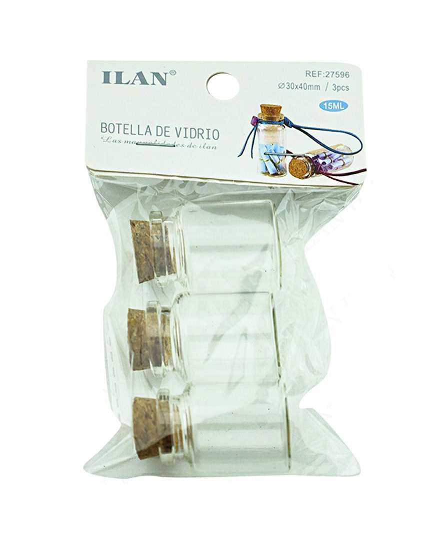 Mini transparante glazenflesjes met kurk dop 15ml 3 stuks