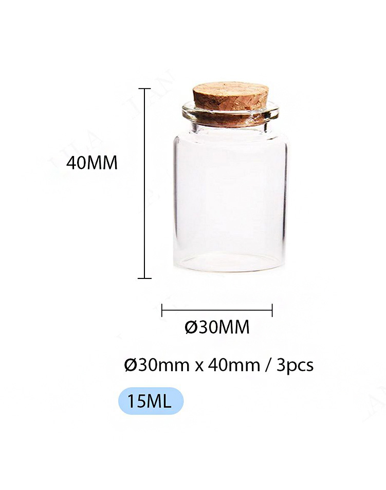 Eigenschappen glazenflesjes met kurkdeksel 15ml 3st: