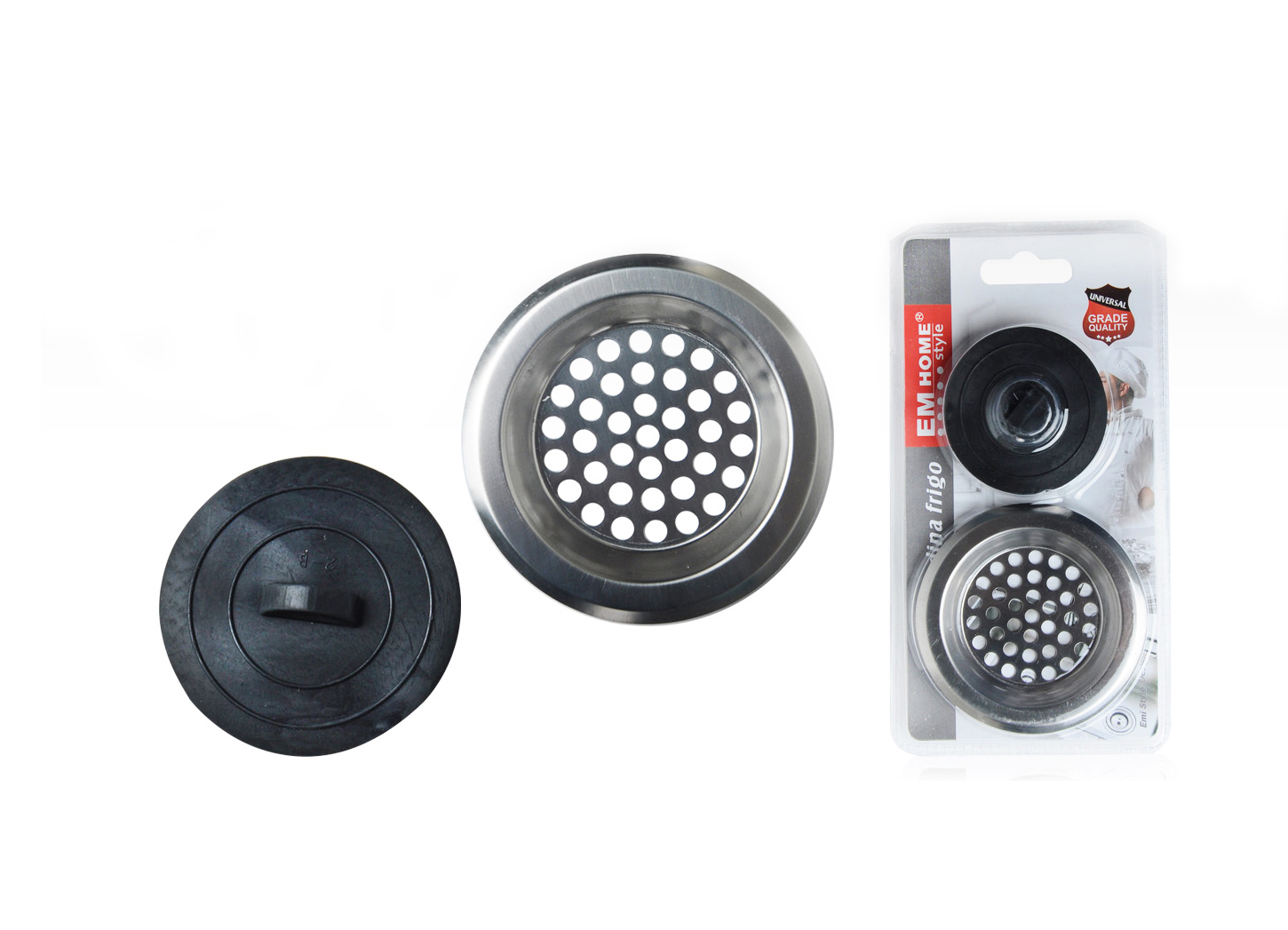 Een complete set van gootsteenzeef en afvoerplug geschikt voor spoelbak met afvoer van ca. 35mm.