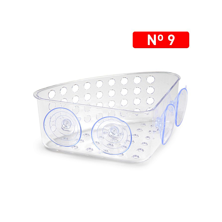 Kunststof hoek badkamerbakje 24×16,2×8,3cm (No. 9) met 4 zuignappen