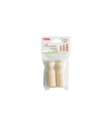 Onafgewerkte kleine houten peg poppertjes mannelijk 23*23*65mm – 2 stuks