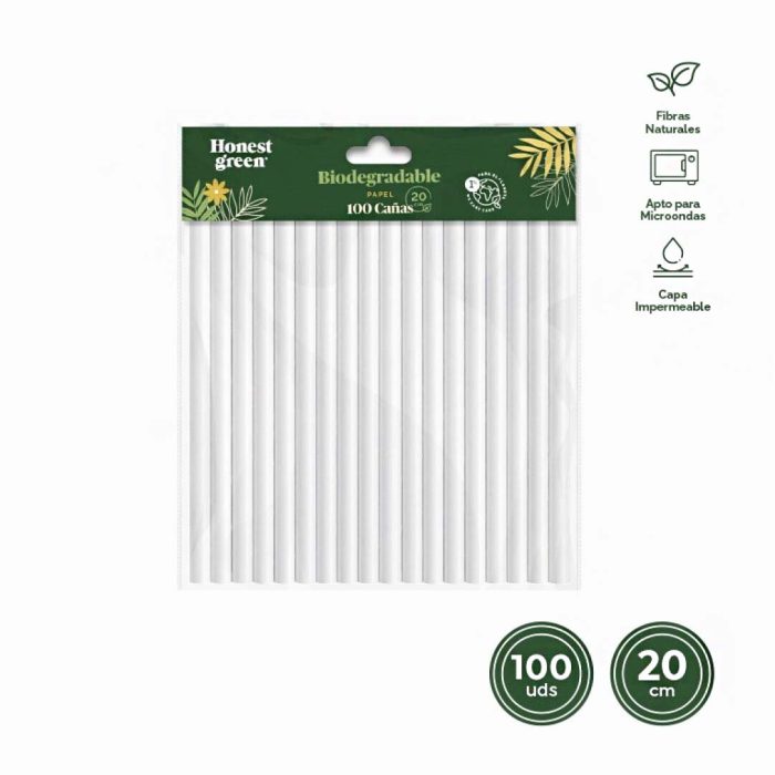 Biologisch afbreekbare papieren drinkrietjes wit D6mm/20cm (100 stuks)