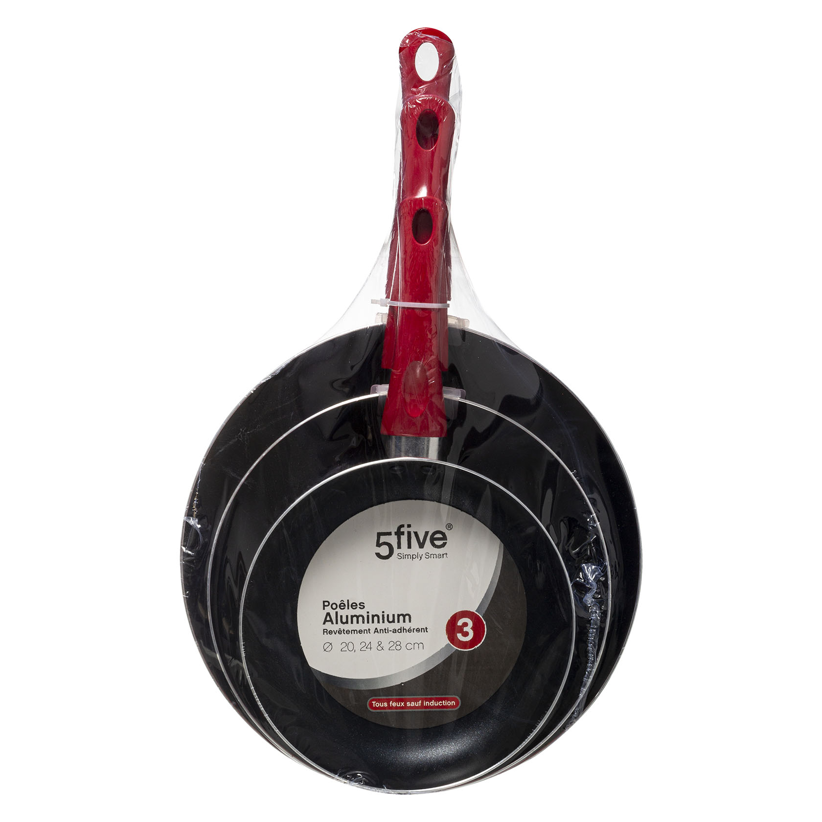 Pannenset aluminium rood/zwart 3st ø20/24/28cm