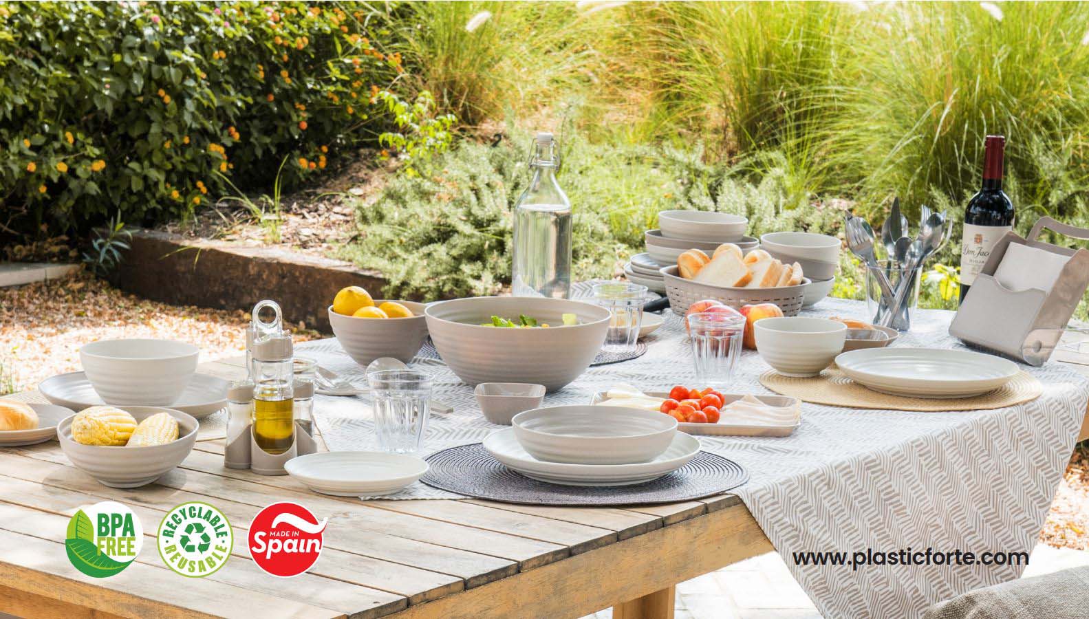 Een mooie kunststof kom uit de servies serie “Classic” geschikt voor zowel binnen als buiten. Gemaakt van hard plastics, dit servies zijn niet alleen stapelbaar, maar ze zijn ook breukvast, licht van gewicht en praktisch. Het ontwerp is ongecompliceerd en is makkelijk te combineren met ander servies. Het contrast tussen de lichte glanzende afwerking aan de binnenzijde en een matte rustieke afwerking aan de buitenzijde creëert een elegante en rustige uitstraling. Naast voor eigen dagelijks gebruik is deze kom ook geschikt voor diverse (speciale) gelegenheden zoals feestjes, op vakantie (camping), picknick en barbecue en voor onderweg.