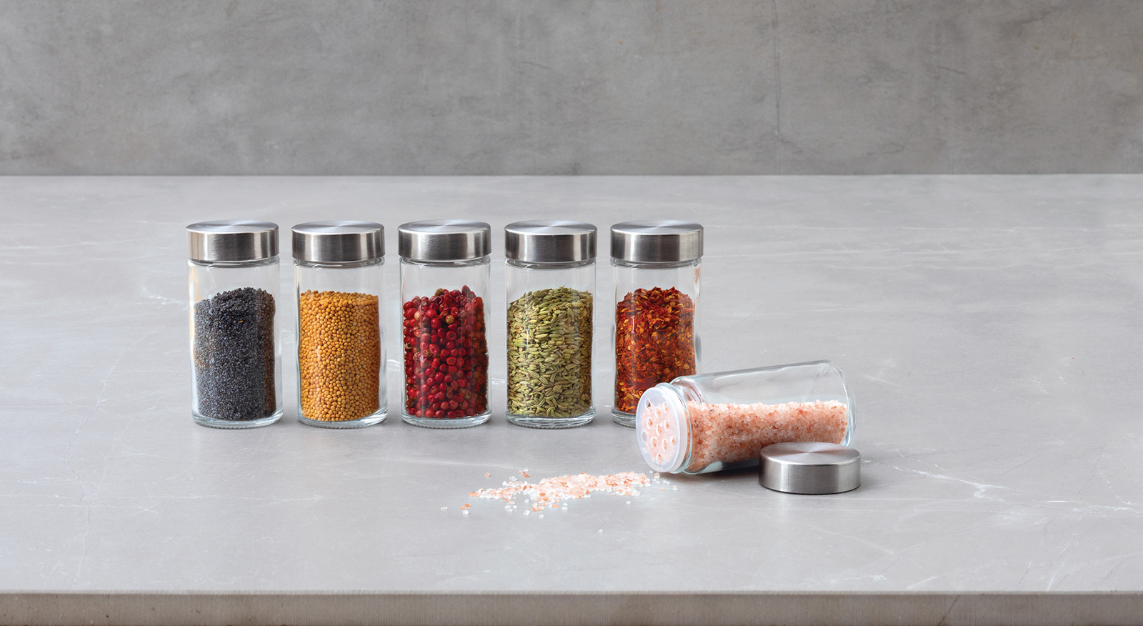 Met deze complete set glazen kruidenpotjes creëer je orde en netheid in de keuken. De set bestaat uit 6 glazen potjes en wordt compleet geleverd met strooideksels en RVS deksels voor elk potje. Dankzij het glazen materiaal kan je gemakkelijk zien welke kruiden en hoeveel er nog in zit. Zo weet je meteen wanneer ze bijgevuld moeten worden.