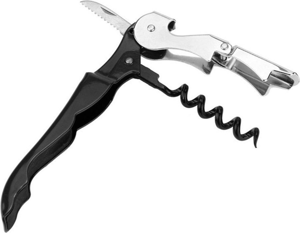Deze klassieke kurkentrekker is een echte 3-in-1 klassieker, een must have voor de echte wijnliefhebber! Het kelnersmes bevat een kurkentrekker, een handig kartelmesje om de bovenkant van de fles te verwijderen. Dit allemaal om de wijnfles zo makkelijk mogelijk open te maken. Deze kelnersmes is uitgerust met een dubbele hefboomoverbrenging, zodat de kurk in een keer uit de fles te verwijderen is.