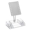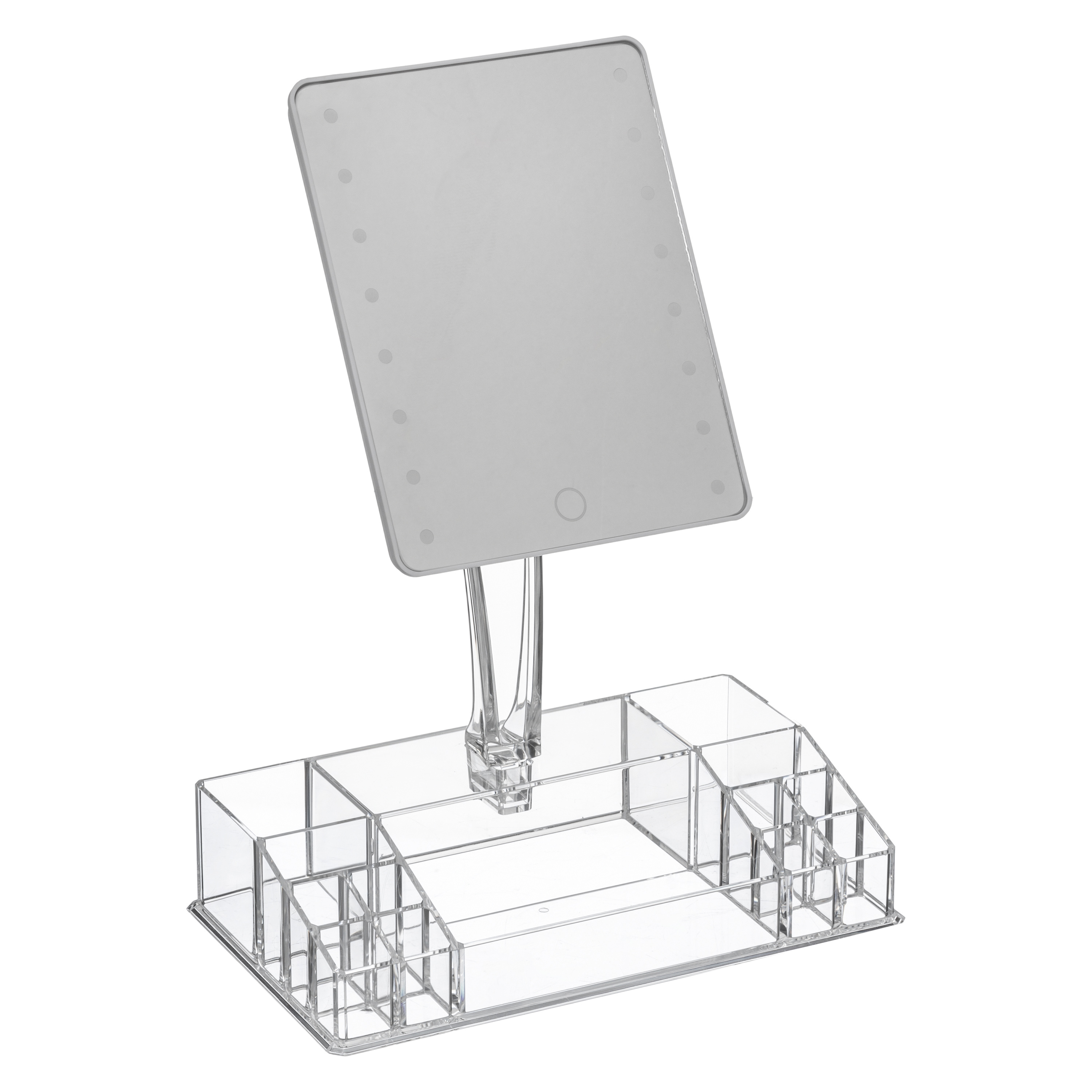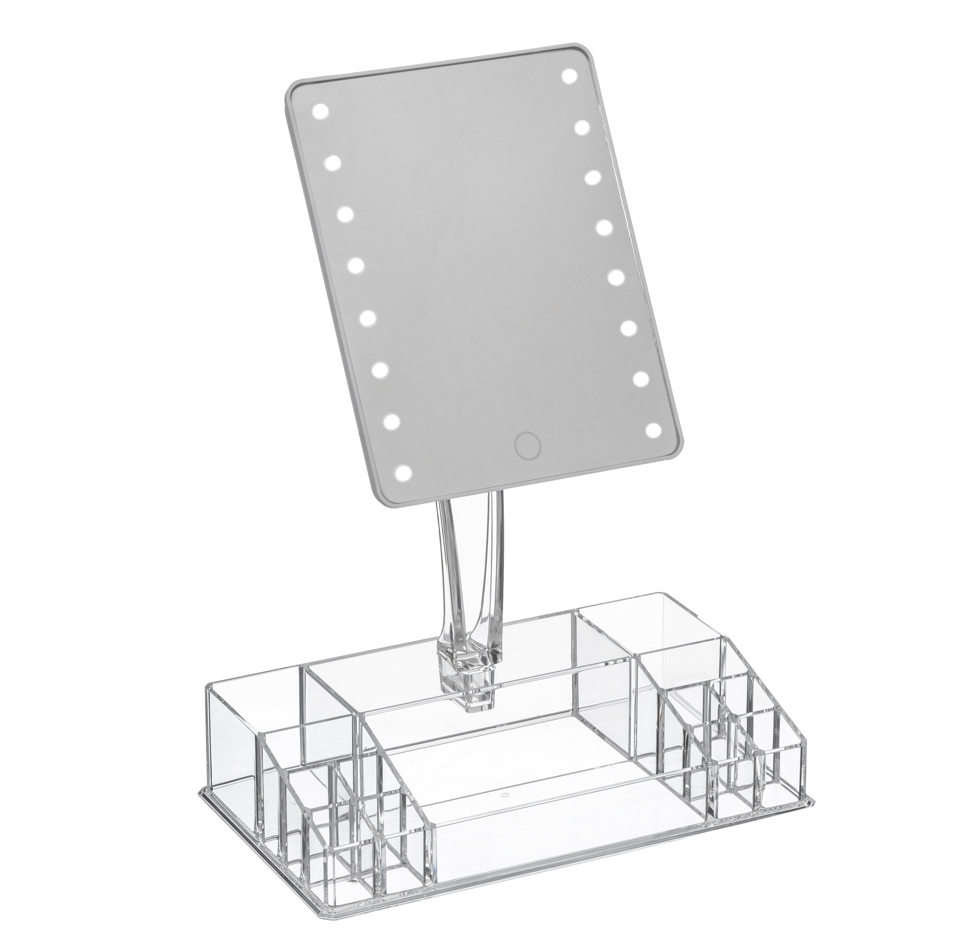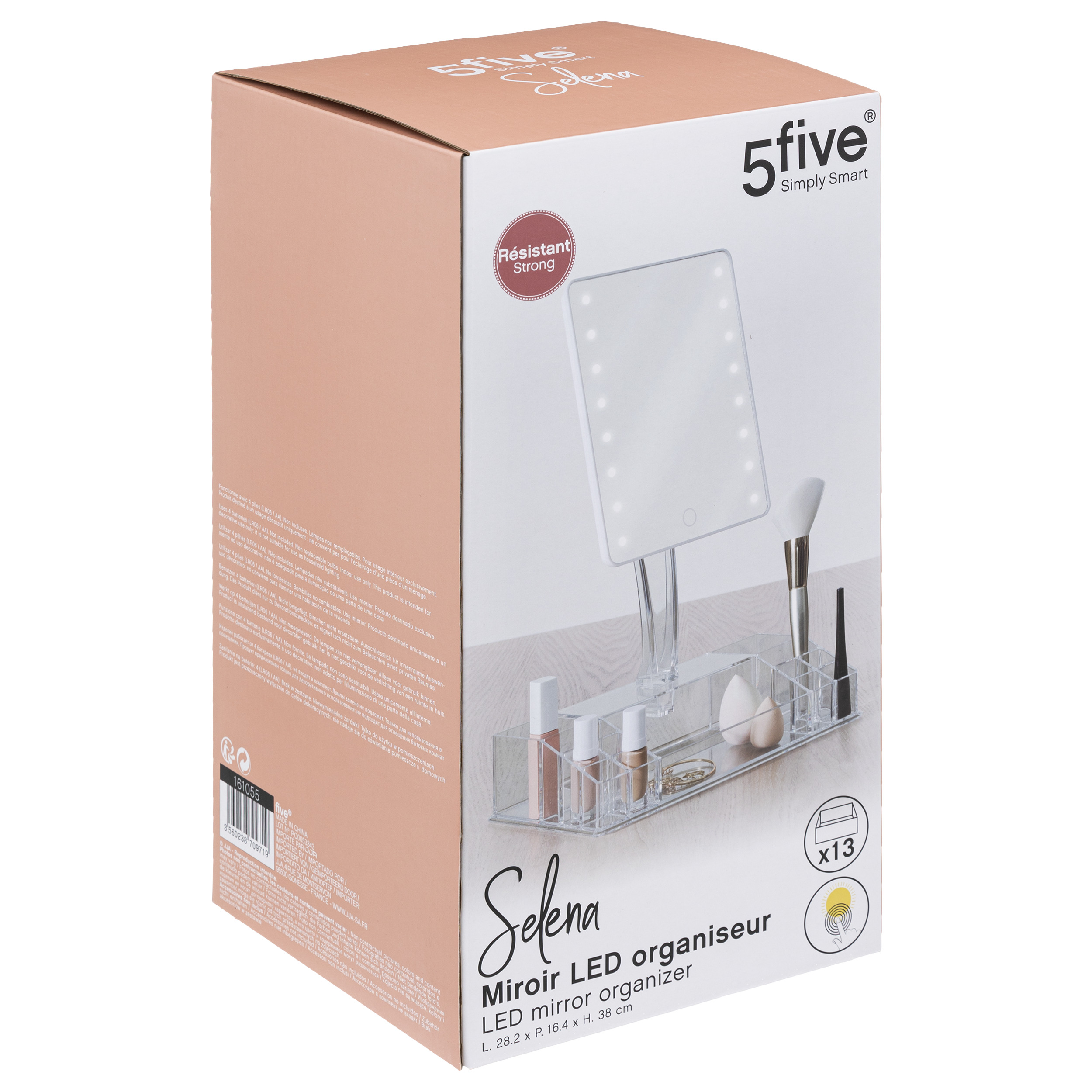 Deze LED spiegel is ideaal om uw make-up overal aan te brengen dankzij de LED lichtjes met opslagruimte zodat u al uw favoriete make-up producten netjes bij elkaar kan houden. De spiegel geeft voldoende licht om op elk moment van de dag en overal in uw huis je mooi te kunnen opmaken. U kan in de opbergvakken zowel make-up, make-up borstels of sieraden plaatsen. Er zijn 13 opbergvakken en 16 LED lichtjes die op 4 AA batterijen werken.