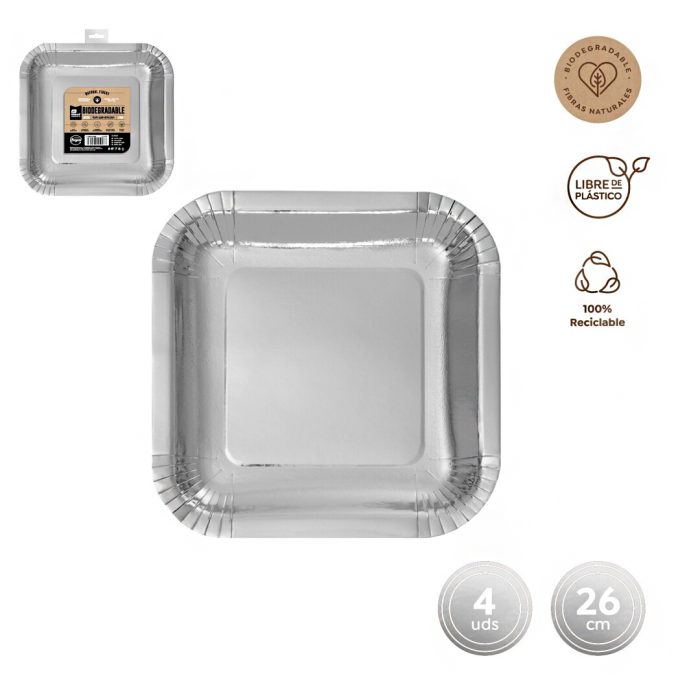 Deze luxe vierkante borden soja zilver in het glans metallic zilver zijn volledig gemaakt van sojavezels maar voelt aan als karton. Ideaal voor feestelijke gelegenheden zoals nieuwjaarsfeest , verjaardagsfeest of themafeestje. Na gebruik kun je ze weggooien waardoor je ook geen afwas hebt en snel hebt opgeruimd.