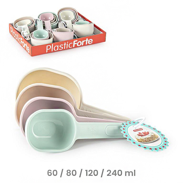 Maatcups set 4-dlg 60ml/80ml/120ml/240ml in pastel kleuren, ideaal voor koken en bakken in elke keuken