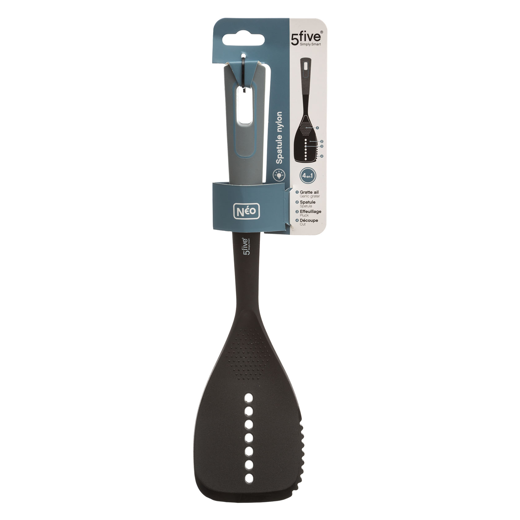 Bakspatel nylon grijs/zwart met knoflookschraper, gekartelde kant en uitlekgaten collectie Neo 34,5cm