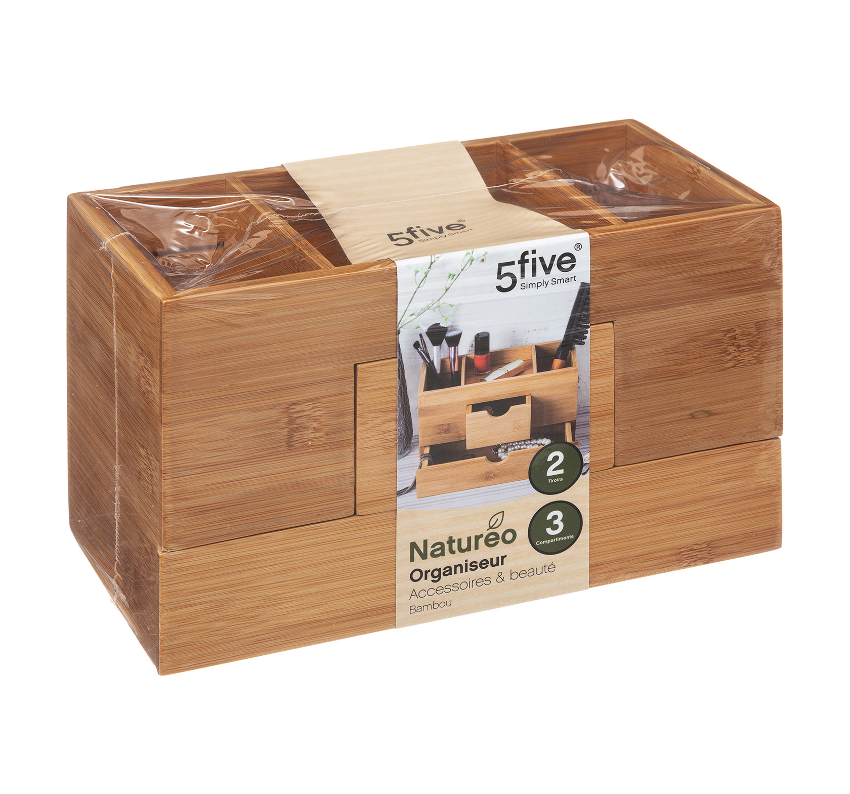 Eigenschappen organizer bamboe met 2 lades naturel: