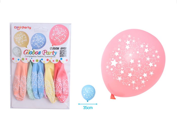 – Bestaat uit 6 stuks ballonnen van diverse pastel kleuren.