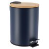 Een compacte maar stijlvolle pedaalemmer voor in kleine ruimtes zoals badkamer, toilet, slaapkamer, keuken en kantoor. Dankzij het kleine formaat neemt deze metalen pedaalemmer niet veel ruimte in beslag. De combinatie van bamboe met blauw materiaal geeft een luxe en natuurlijke uitstraling.