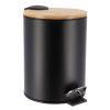 Metalen afvalemmer met soft-close bamboe deksel zwart-naturel 2,5L