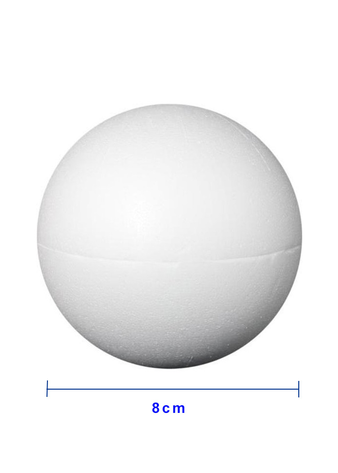 Een piepschuim bol van 8 cm is een lichte en veelzijdige bol, gemaakt van geëxpandeerd polystyreen (EPS).Door zijn iets grotere formaat is deze bol ideaal voor diverse knutselprojecten, decoraties en modellen. De gladde en lichte structuur maakt het gemakkelijk om te schilderen, beplakken of in andere ontwerpen te verwerken.