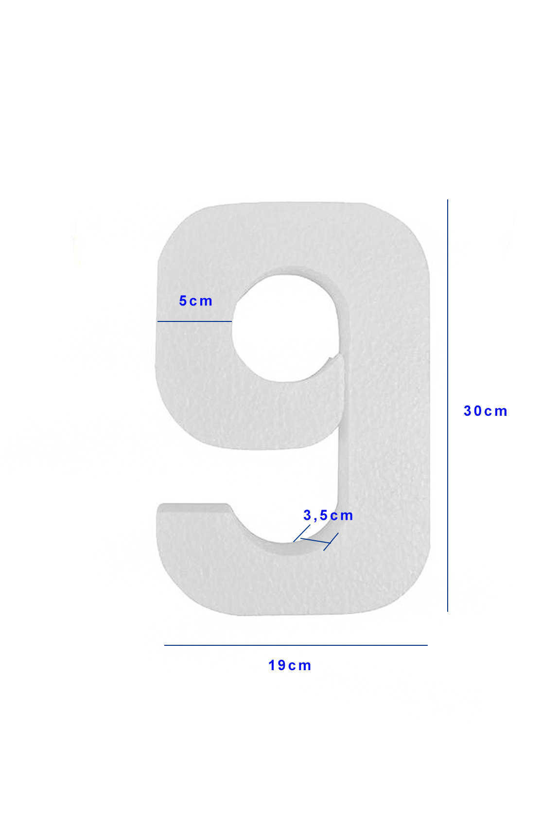 Eigenschappen piepschuim cijfer 9 (30cm):