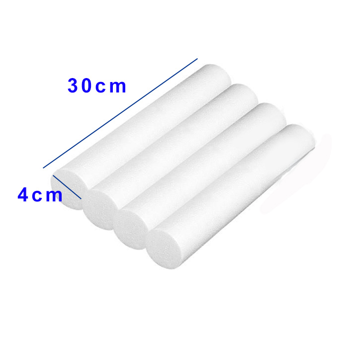 Piepschuim/ Styrofoam vormen/figuren cilinder staven wit D.4*20cm 4 stuks