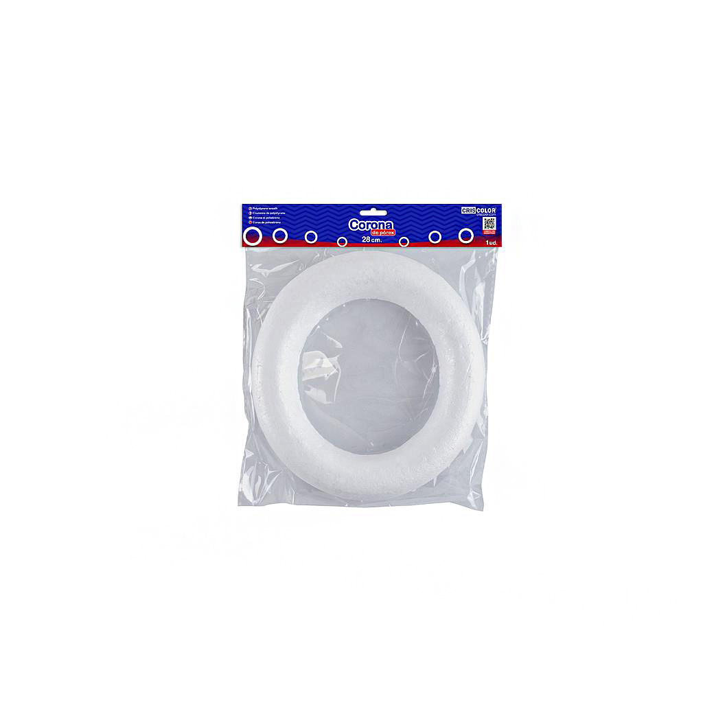 Deze piepschuim krans met een diameter van 28cm is een veelzijdige basis voor allerlei creatieve en decoratieve projecten. De krans heeft een half ronde bovenkant en een vlakke, platte onderkant, wat zorgt voor stabiliteit en eenvoudige plaatsing op vlakke oppervlakken. Ideaal voor het maken van kransen, bloemstukken, feestelijke decoraties en meer.