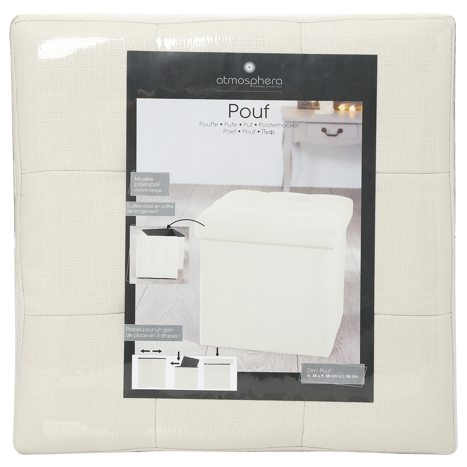 Poef met bergruimte vierkant crème 38*38*38cm