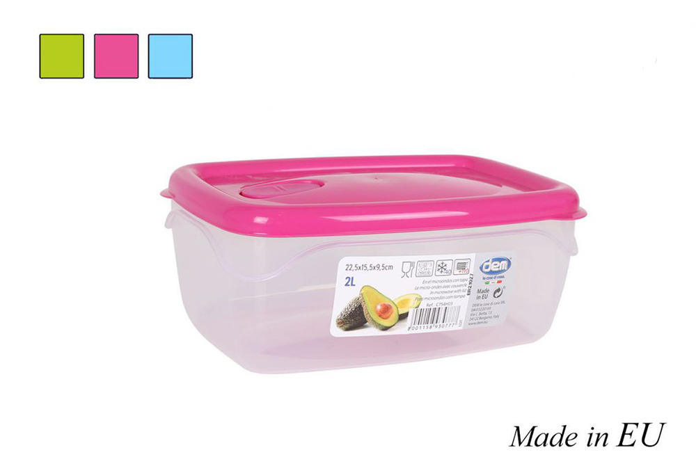 Rechthoekige vershoudbak met magnetron ventiel 2 L