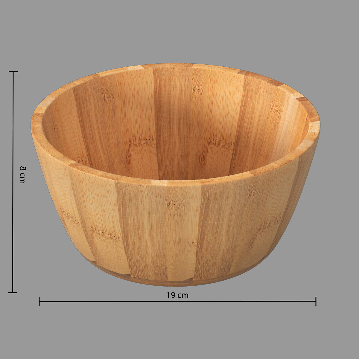 Middelgrote bamboe slakom van 19cm, ideaal voor salades en bijgerechten, met een natuurlijke en stijlvolle uitstraling