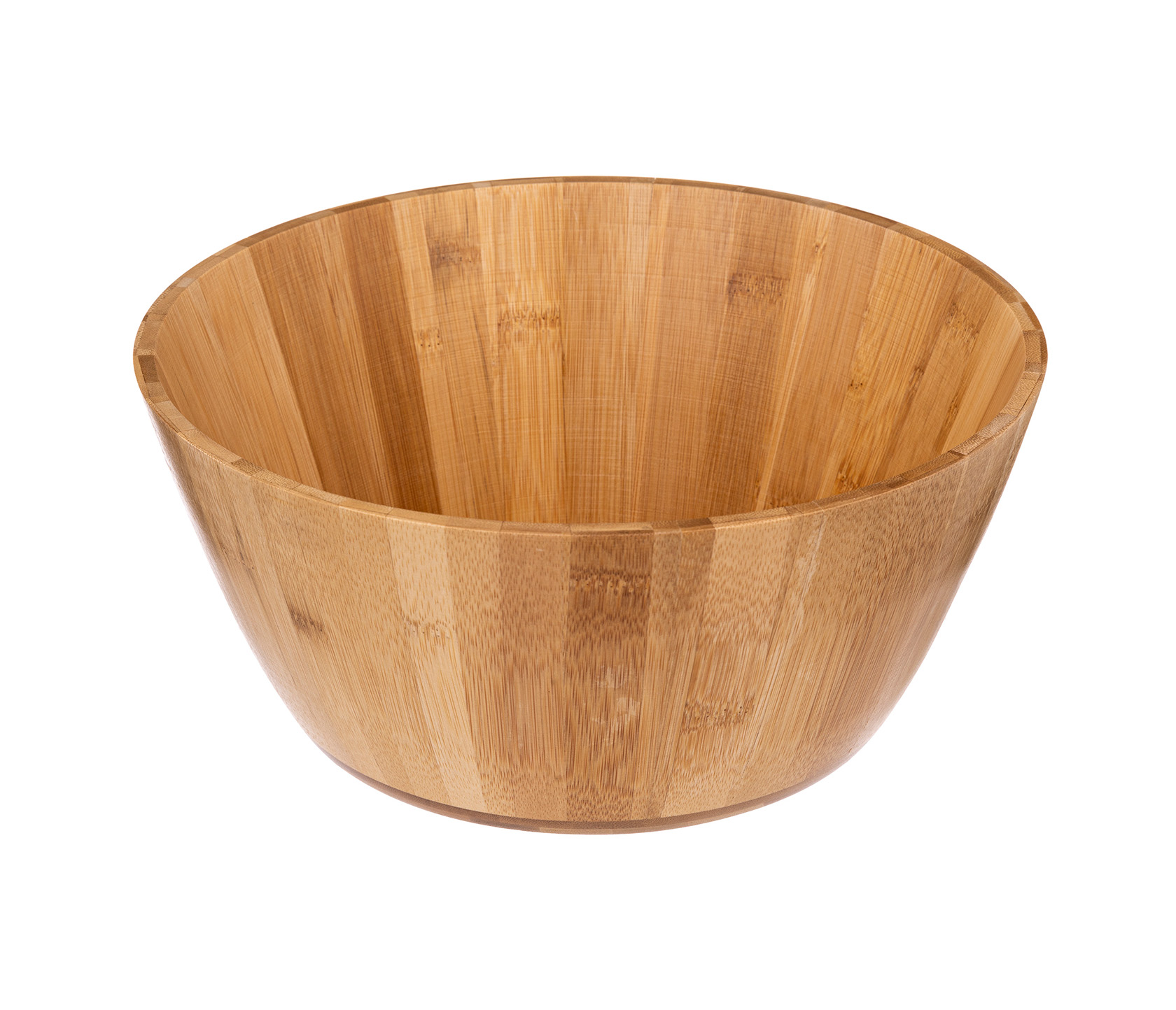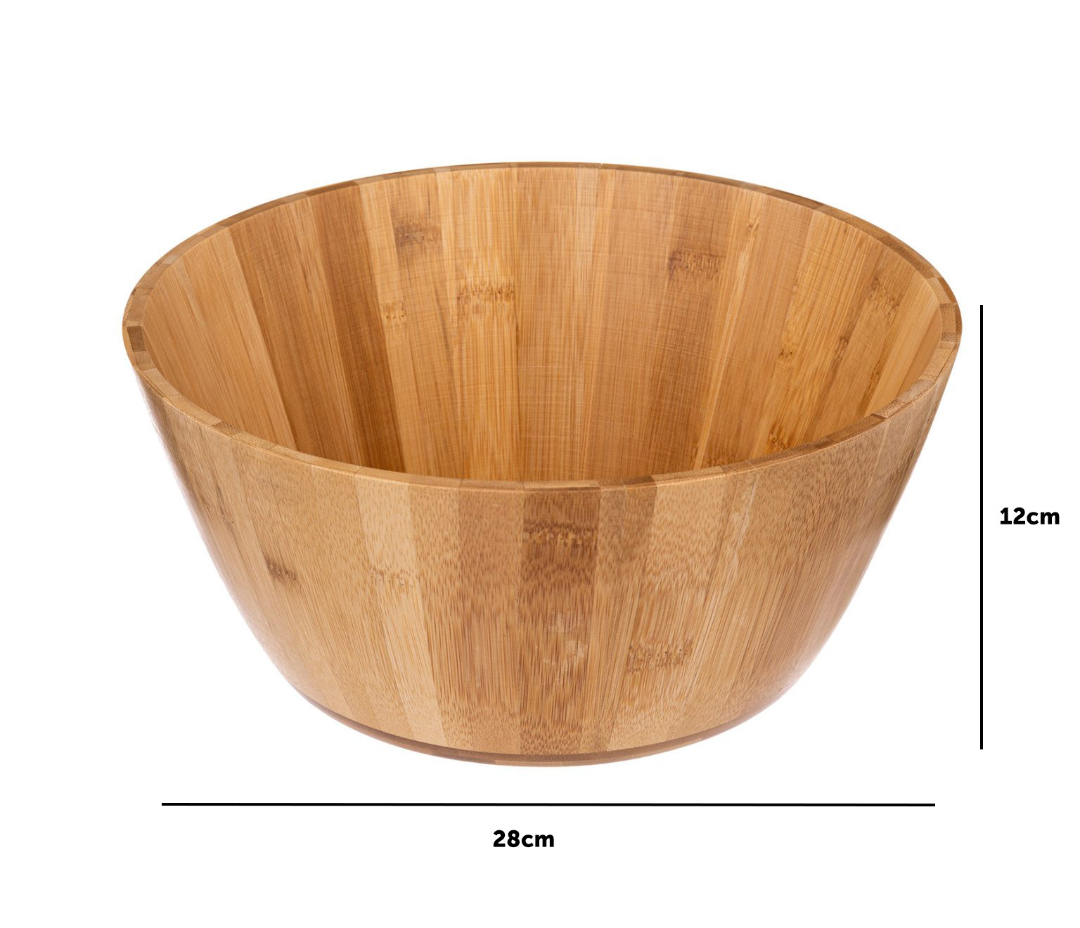 Grote bamboe saladekom van 28cm, ideaal voor salades en serveren, met een warme uitstraling en duurzaam materiaal