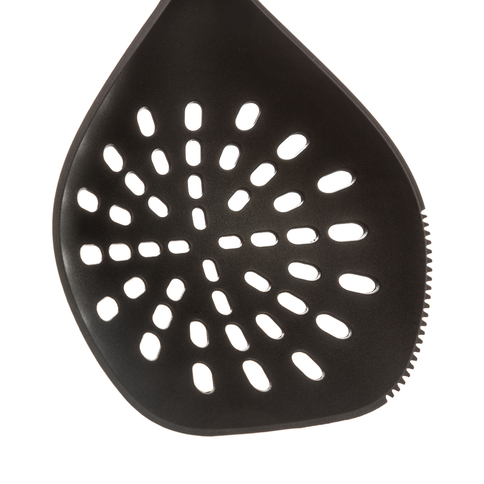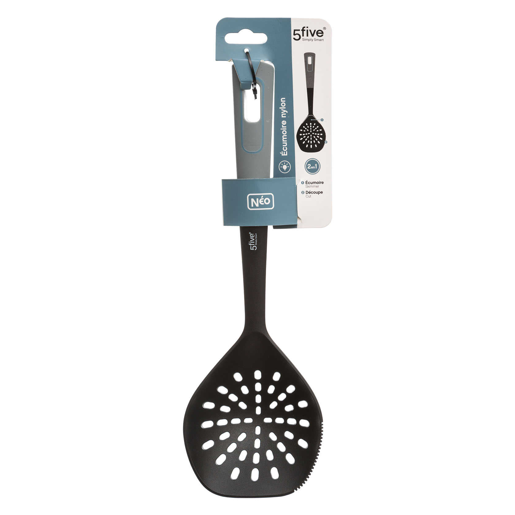 Onmisbaar in elke keuken is deze schuimspaan. Deze unieke schuimspaan is gemaakt van hoogwaardige en stevige nylon en heeft een rubber handvat voor extra grip. Door het gebruiken van een nylon kookgerei kan je veilig koken en voorkom je krassen in je pannen. Deze geperforeerde en afgeronde lepel is ideaal om bouillon of jus af te schuimen en verwijder alles wat er niet in hoort. Ook ideaal om kokende groenten uit de pan te halen, het zeven van vlees of afschuimen van soepen en stoofschotels.