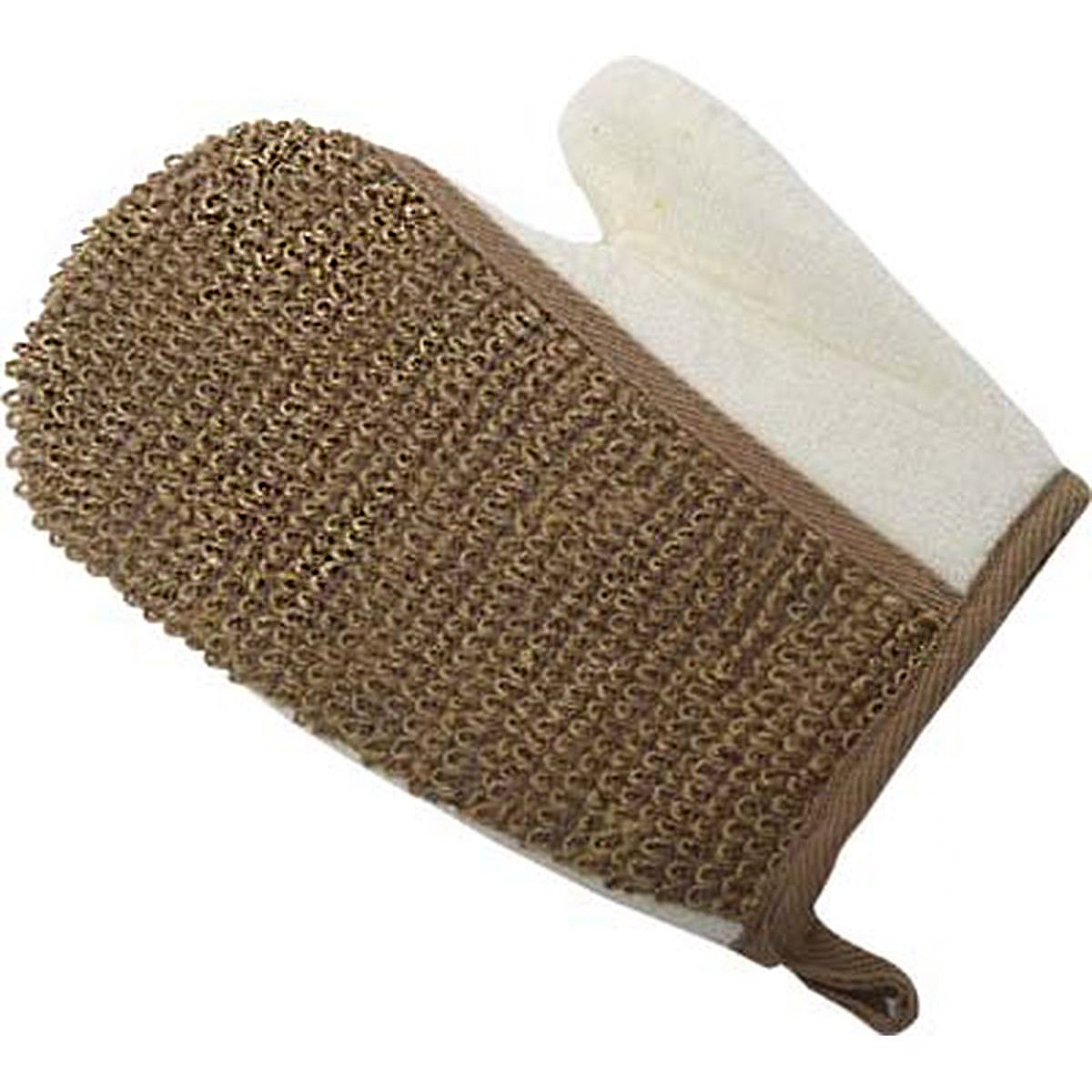 Scrubhandschoen lichaam hennep-bamboe crème/donker naturel