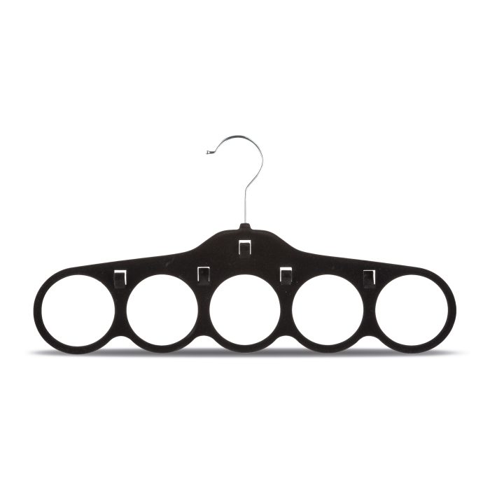 Sjaalhanger en riemhouder velours zwart met 5 ophanghaken en 5 cirkels