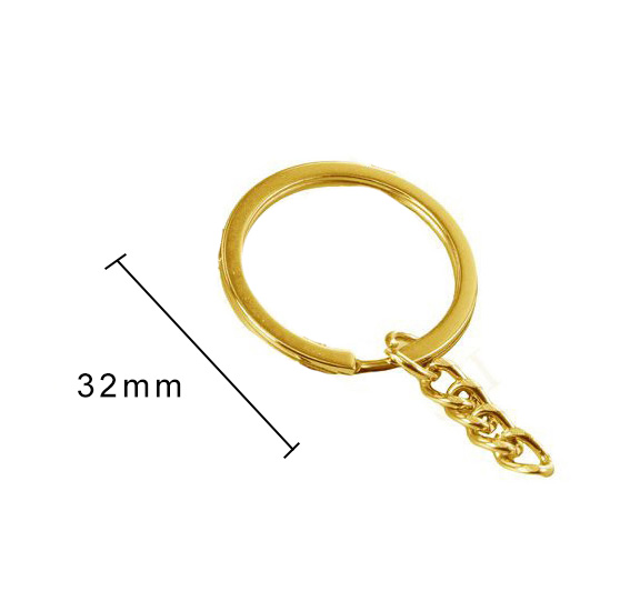 Metalen sleutelring met ketting goud 32mm eigen luxe sleutelhanger maken (6 stuks)