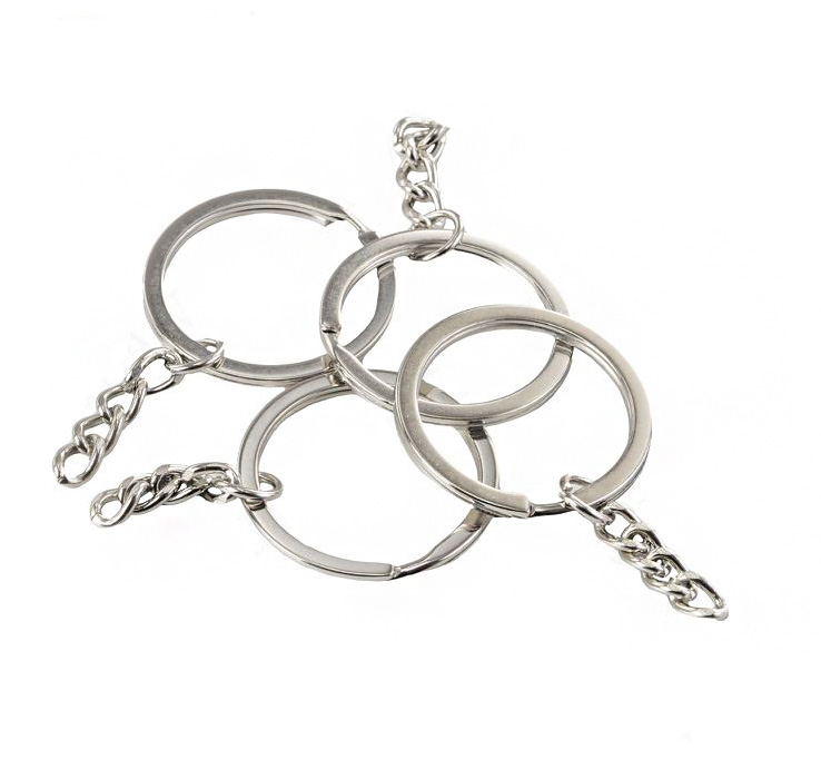 Metalen sleutelring met ketting zilver 32mm eigen luxe sleutelhanger maken (6 stuks)