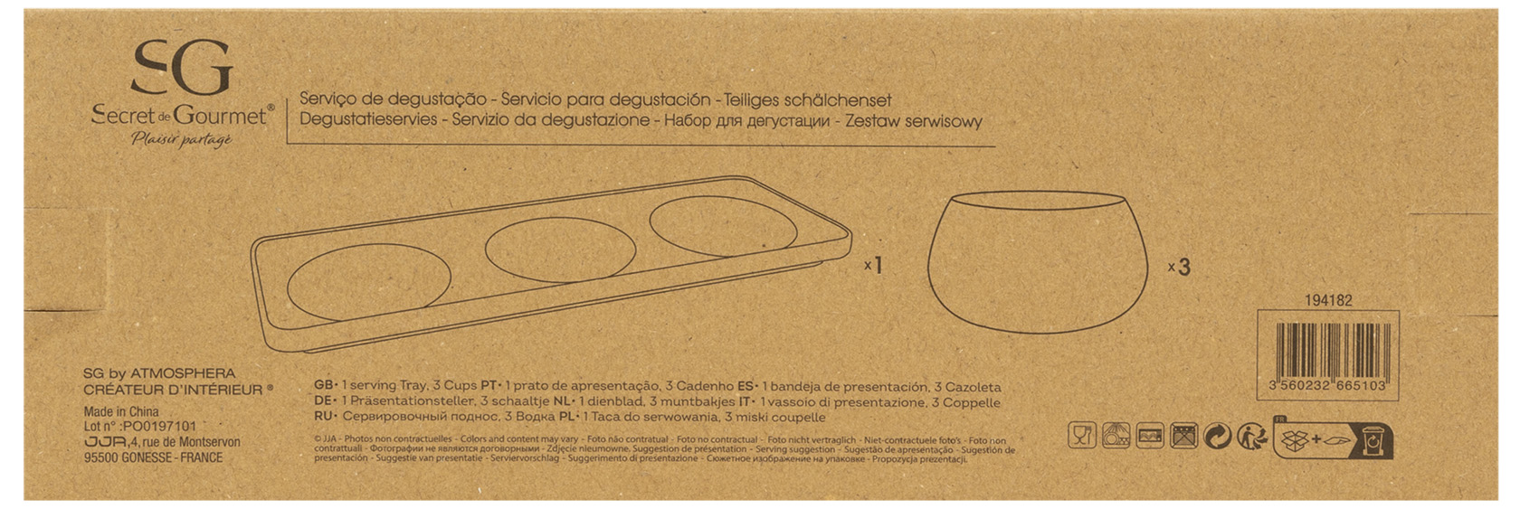 – Het plateau is voorzien van inkepingen die ervoor zorgen dat de schaaltjes stevig blijven staan en niet verschuiven tijdens het serveren