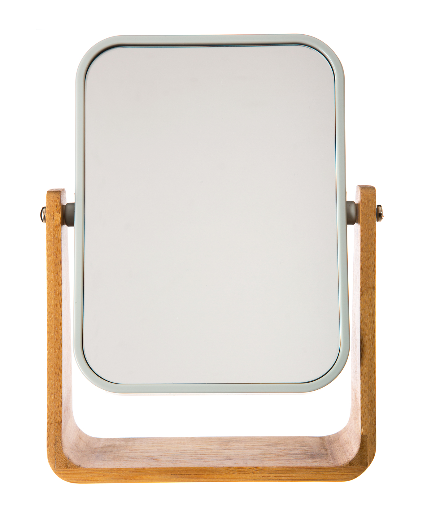 De dubbelzijdig tafelmodel spiegel voor in badkamer, slaapkamer of kleedkamer. Handig en elegant.