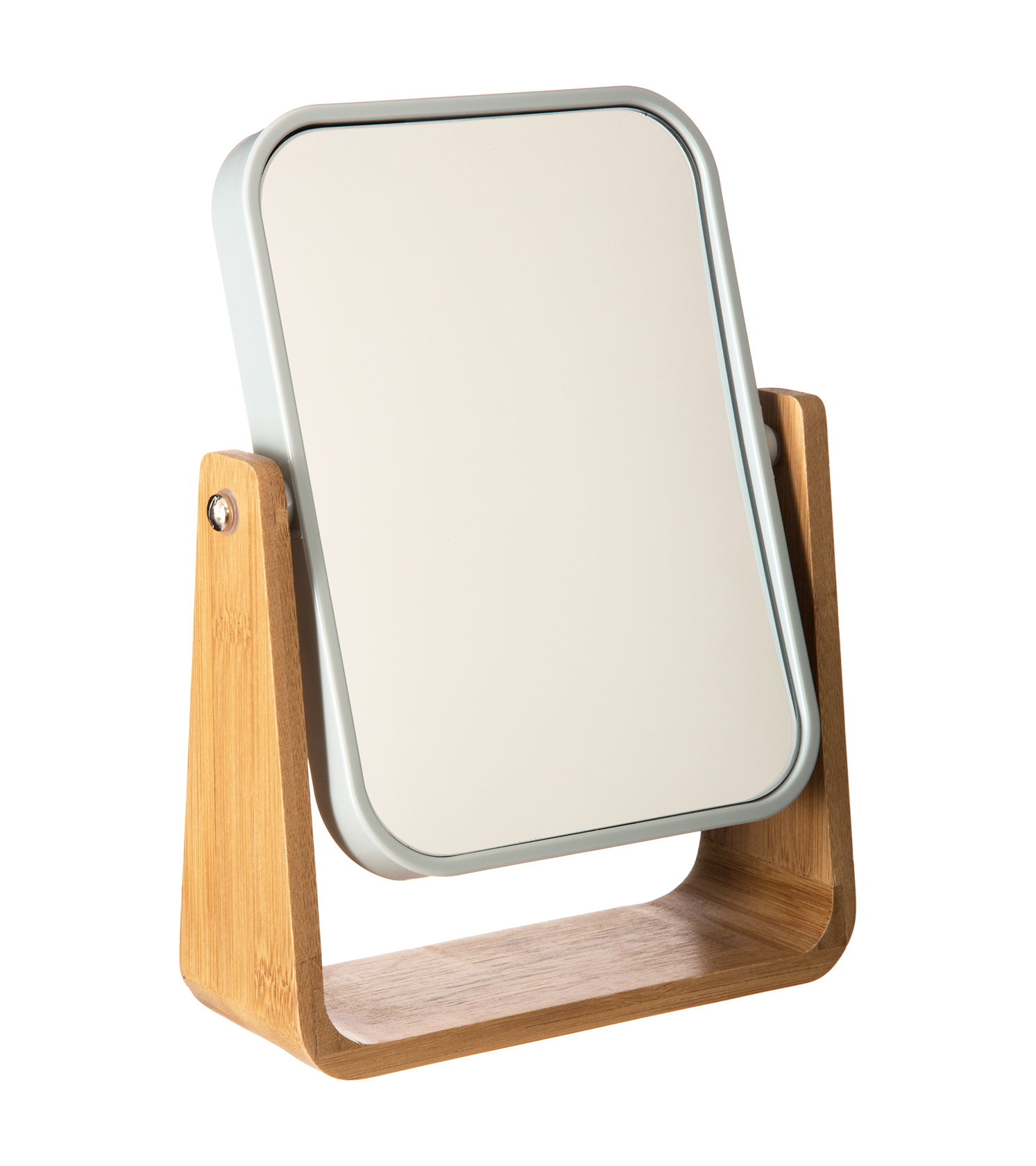– De onderstel is gemaakt van bamboe en spiegel is omringd door een kunststof witte rand.